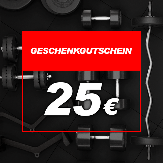 Schenke Fitness für Zuhause mit unseren digitalen Geschenkgutscheinen. Wähle einfach zwischen 10 €, 25 €, 50 €, 100 €, 150 €, 200 € oder 500 €.