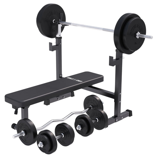 Hantelbank Sets sind jedoch durchaus auch in der „Basis Variante“ erhältlich. Hier verfügst Du dann über eine gerade Bank und ein kleines Langhantelset.