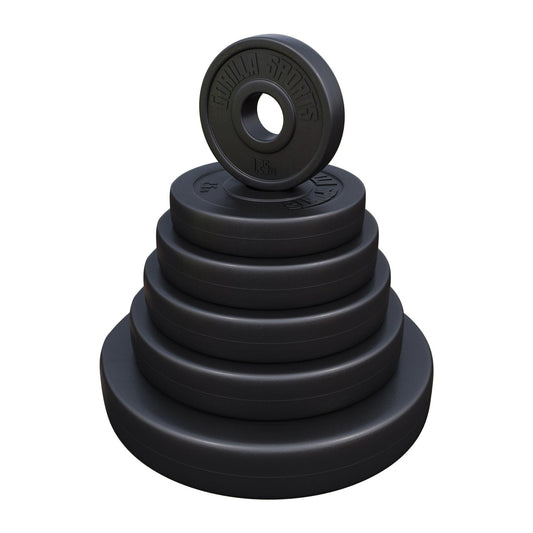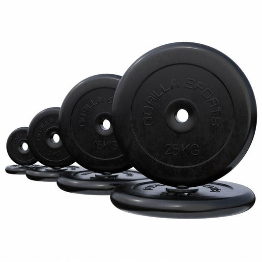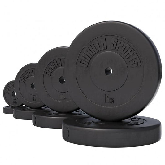 Gorilla Sports bietet Hantelscheiben für Hantelstangen mit 30 mm oder 50 mm Durchmesser an. Je nach Bedarf findest Du Hantelscheiben aus Kunststoff, Gusseisen oder Gummi, teilweise mit extra Gripp für eine einfachere Handhabung.