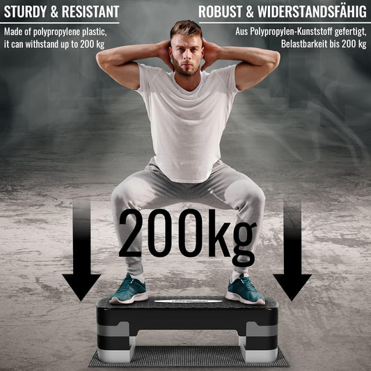 Ein Steppbrett ist ein unverzichtbares Tool für Aerobic-Workouts und vielseitige Fitnessübungen, die Ausdauer und Koordination steigern. Durch das Auf- und Absteigen wird nicht nur das Herz-Kreislauf-System trainiert, sondern auch die Bein- und Gesäßmuskulatur gezielt gefordert.