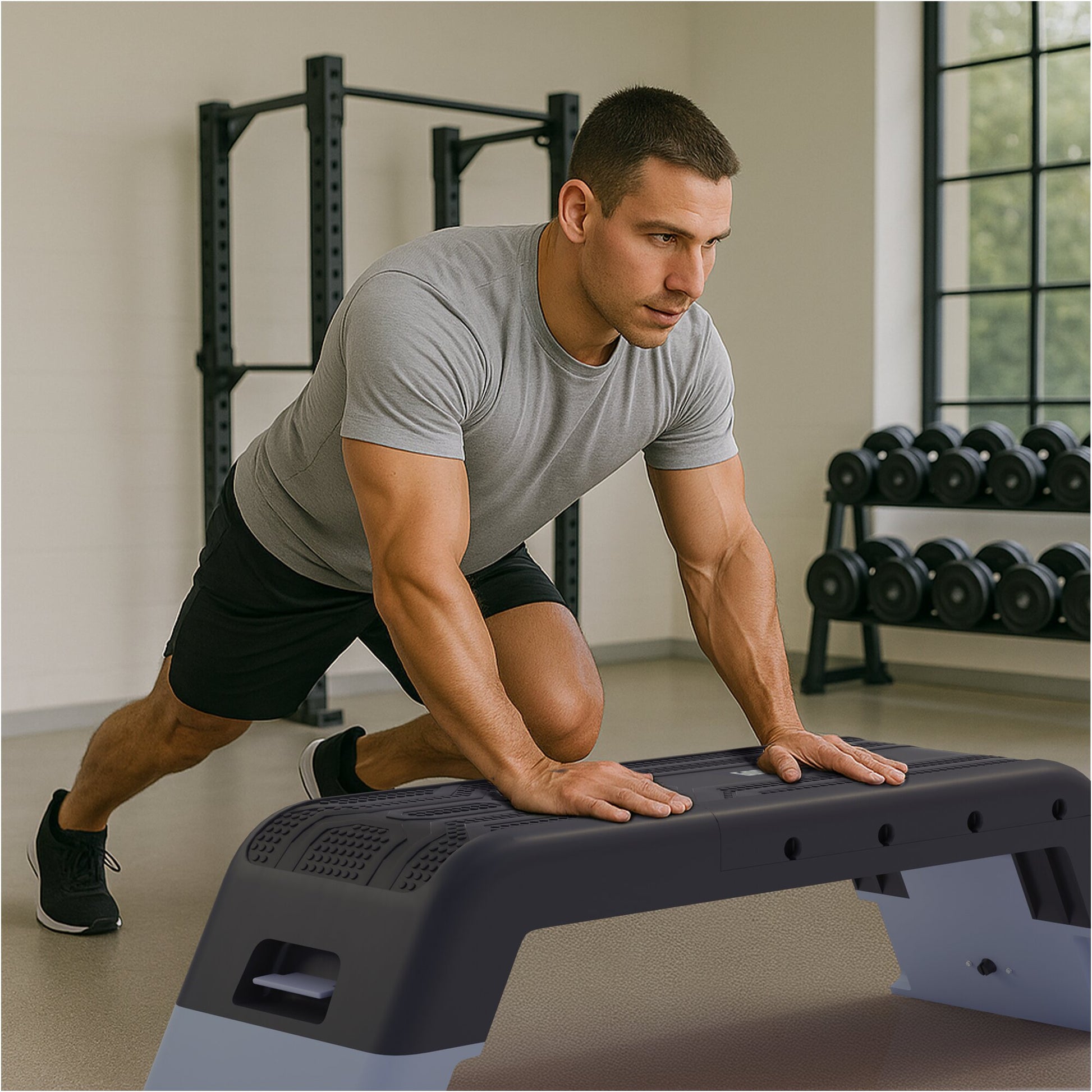 Du suchst nach einem Fitnessgerät, das sich perfekt an Deine Workouts anpasst? Das GORILLA SPORTS® Aerobic Deck bietet genau die Flexibilität, die Du brauchst! Mit zwei einstellbaren Höhen (20 und 35 cm) und der Möglichkeit, es als Schräg-, Flach- oder Negativbank zu verwenden, hast Du volle Kontrolle über Dein Training. Ob als Step Brett oder multifunktionale Trainingsbank – dieses Deck wird das Herzstück Deines Home Gyms.