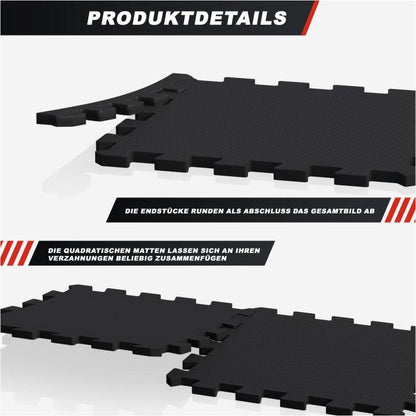 Set enthält: 18 Matten und 18 Randstücke (verschiedene Konfigurationen möglich, z. B. 3x3, 3x4, 3x5, 3x6; 4x4)