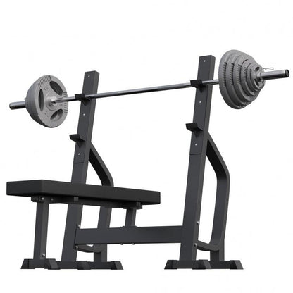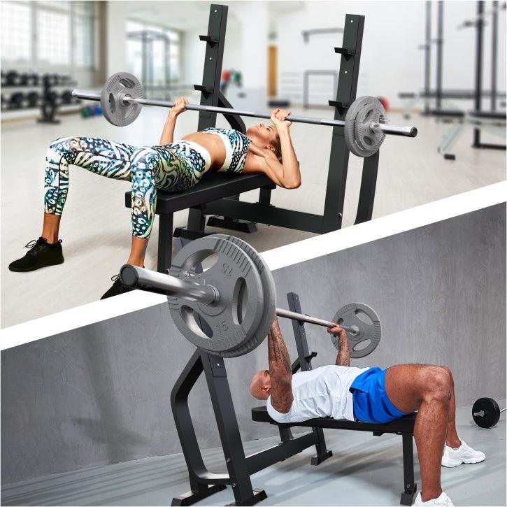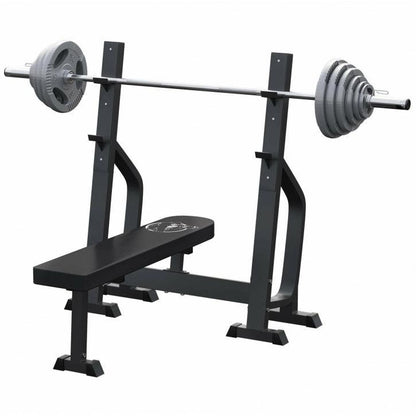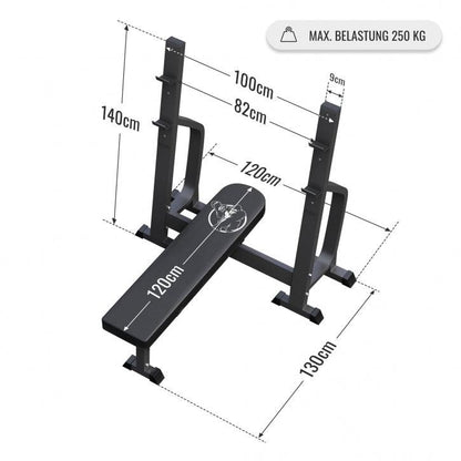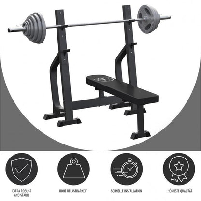 Hantelbank mit 2 Ablagen inkl. Langhantel Set Olympia 130 kg