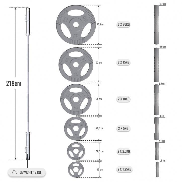 - 2 x 20 kg (Durchmesser 36,5 cm, Breite 3,7 cm)