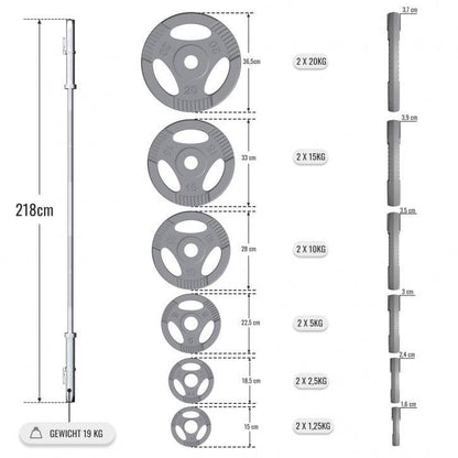 - 12 Gusseisen-Hantelscheiben (1,25–20 kg)