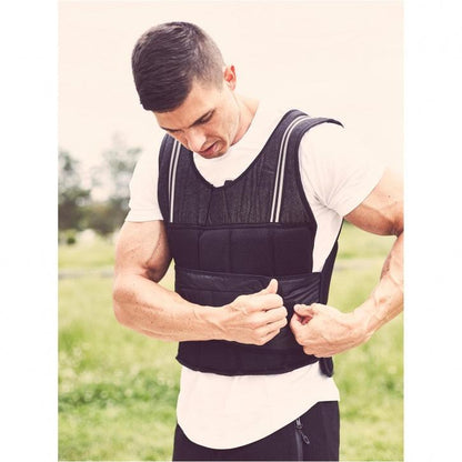 Durch die Verfügbarkeit von verschiedenen, frei wählbaren Gewichten kannst Du zudem die Weste genau auf Deinen Trainingsplan abstimmen und so gezielt und bewusst Deine Ausdauer trainieren. Da die Weste Hilfsmittel genug ist, kannst Du bei einigen Übungen problemlos auf Hanteln oder Gewichtsgürtel verzichten, die Weste wird Dich ausreichend ins Schwitzen bringen. Aus Sicherheitsgründen und zur Erhöhung des Komforts sind die Gewichte eingenäht. Der stabile Klettverschluss hält die Weste zuverlässig an Deinem Körper und sorgt für die notwendige, gleichmäßige, gesunde und natürlich wirkende Mehrbelastung. Praktischerweise ist die Weste in der Universalgröße für Frauen wie Männer zu erhalten. Die Weste ist pflegeleicht und handwaschbar. Das Material besteht aus einem atmungsaktivem Neopren-Nylon-Gemisch.