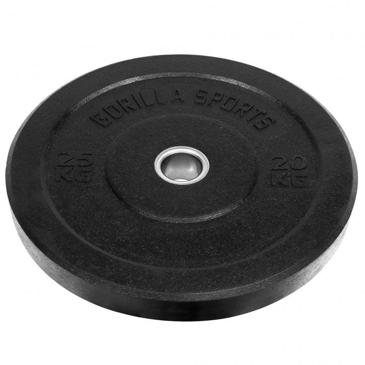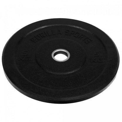 Die Gorilla Sports Hi Temp Bumper Plates in Schwarz werten Dein Home-Gym um qualitätsvolles Trainingszubehör auf: in Form von robusten Hantelscheiben mit Stahlkern und Gummi-Ummantelung, die zu 5, 10, 15, 20 und 25 kg bei Gorilla Sports erhältlich sind.