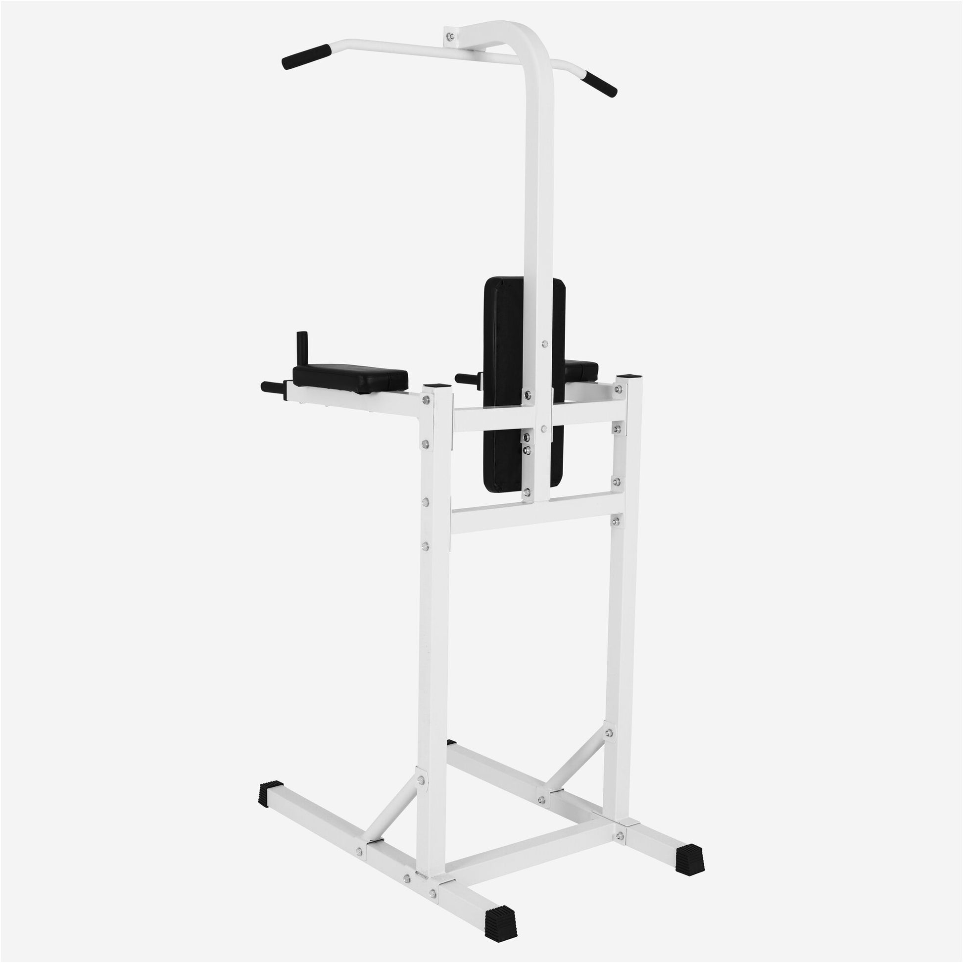 Mit dieser Klimmzugstation in Weiß und Schwarz kannst Du neben Deinen starken Klimmzügen zahlreiche tolle Übungen wie Dips, Chin-ups und Beinheben ausführen. An der Rückenseite und an den Armstützen der Station sorgen gepolsterte Flächen für ein entspanntes Training. Das gut durchdachte Konzept dieses Gerätes bietet Dir auf minimaler Standfläche die Möglichkeit für viele abwechslungsreiche Übungen. Die Intensität Deiner Einheiten steigerst Du mit zusätzlichen Gewichten oder mit mehr Ausführungen.