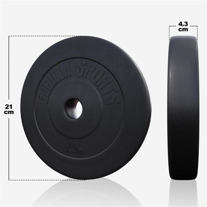 - 2 Hantelscheiben mit 5 kg Gewicht, Durchmesser 25,5 cm, Breite 5 cm