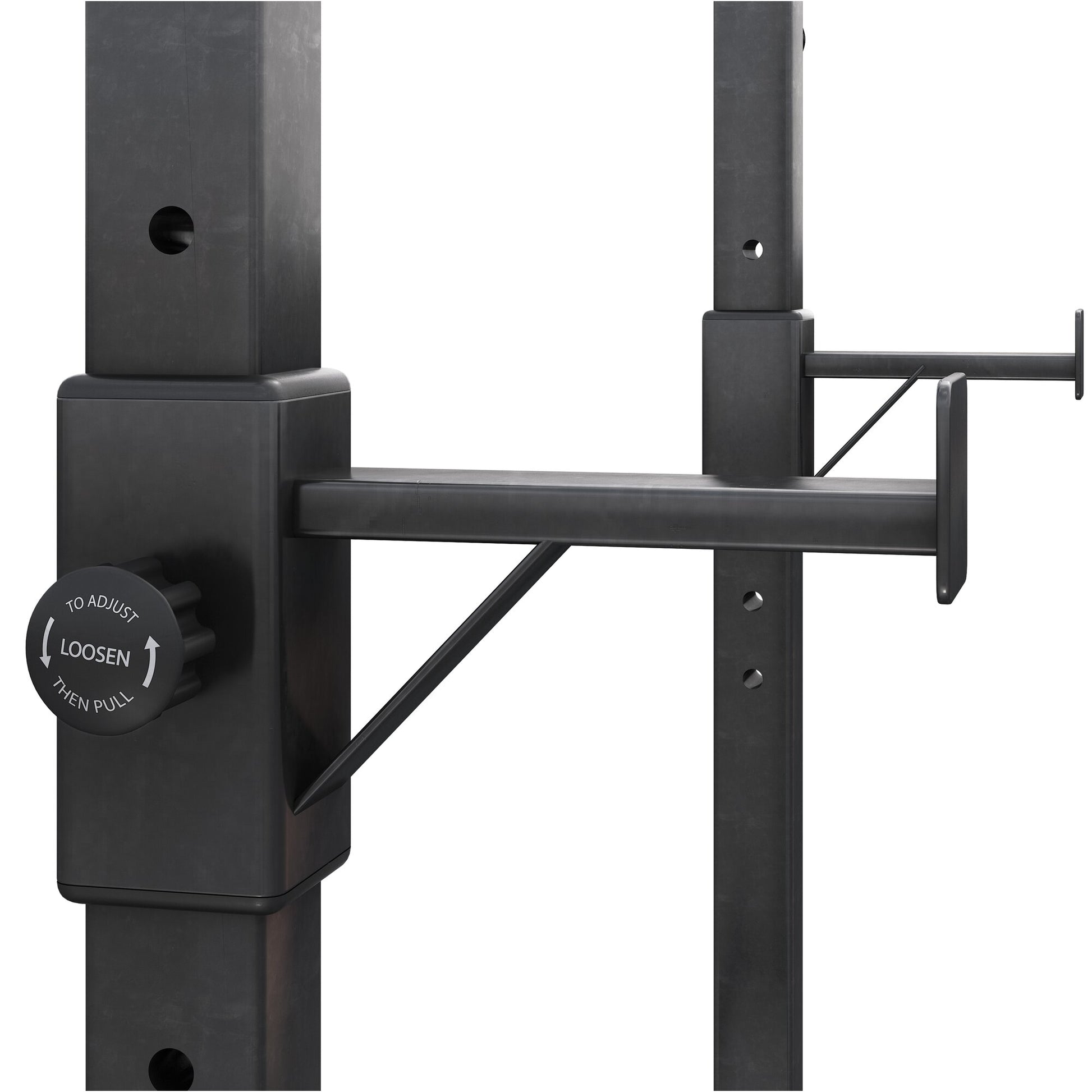 Suchst Du nach einer komfortablen Ablage für Deine Langhantel, um effektive Übungen ohne Trainingspartner auszuführen? Der praktische Langhantelständer in Schwarz eignet sich perfekt für Deine Vorhaben. Er besteht aus zwei Säulen, die separat aufgestellt werden. Solide Füße in Doppel-T-Form verhindern, dass die Konstruktion bei einer seitlichen Belastung kippt. Die obere Auflage für die Langhantel ist mit einem einfachen Mechanismus in einer Höhe zwischen 105 und 172 cm verstellbar (gemessen an der Oberkante der Aufnahme). Eine zweite Ablagemöglichkeit dient für Übungen mit einer Bank. Wenn Du die Langhantelständer nicht benötigst, stellst Du sie platzsparend in einer Ecke ab oder benutzt sie als attraktive Lagerung für Deine Hantel.