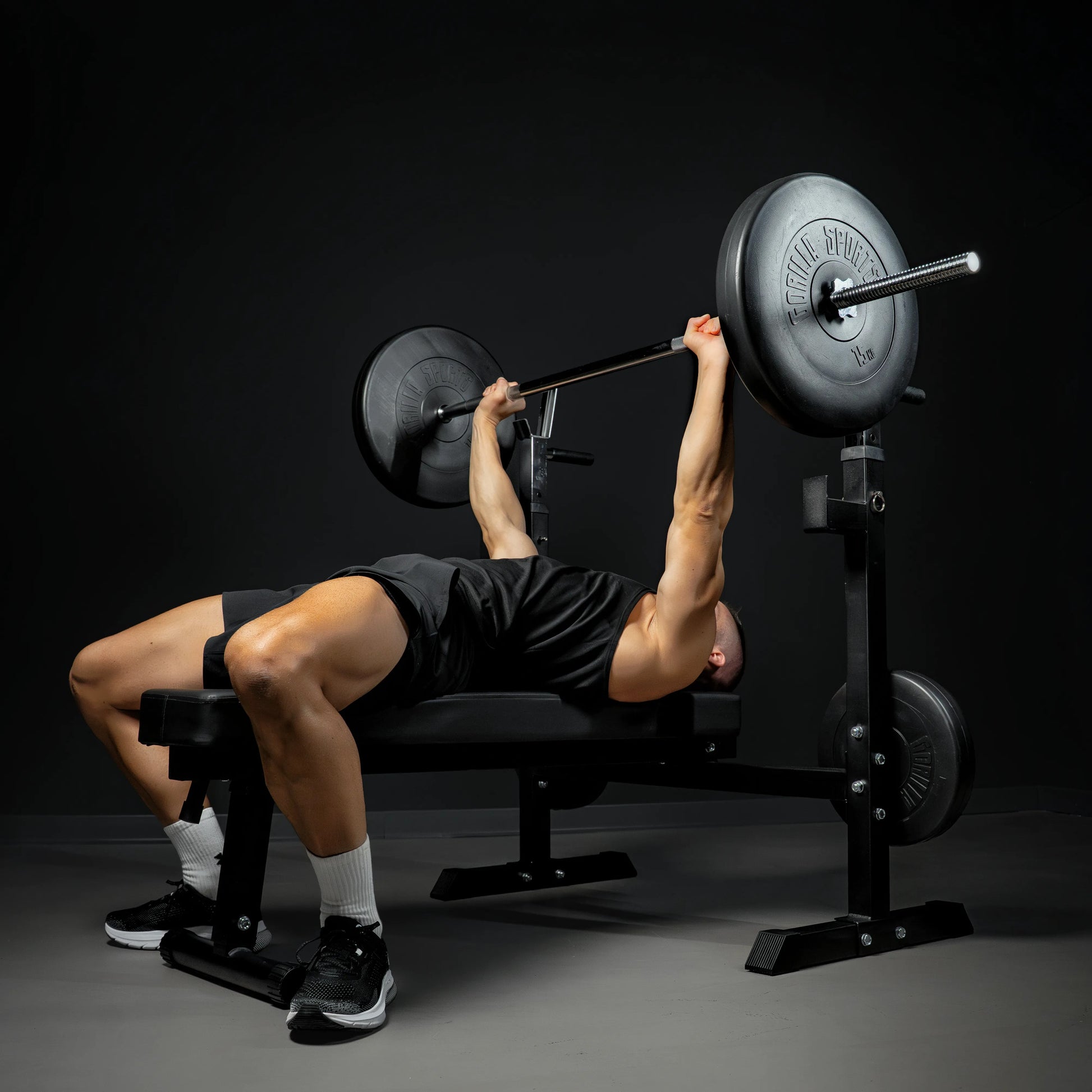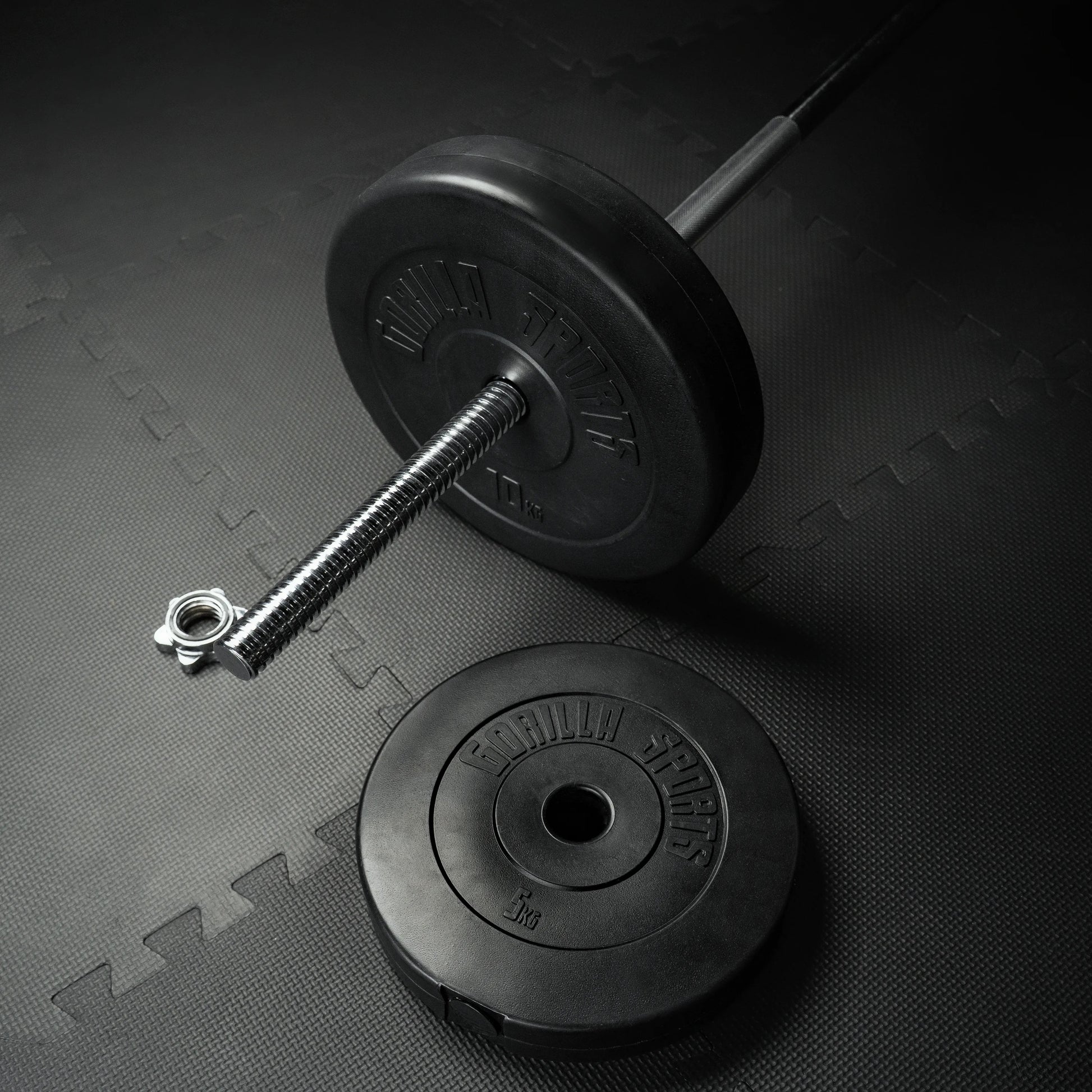 Die Langhantelstange mit Sternverschlüssen von Gorilla Sports in Chrom und Schwarz