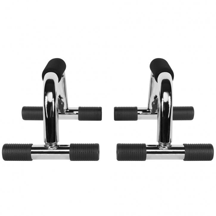 - Verchromte Liegestützgriffe mit Anti-Rutsch-Füßen