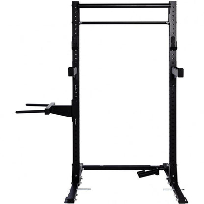 - Kombiniert Squat Rack, Dip Station, Klimmzugstange und Rückentrainer