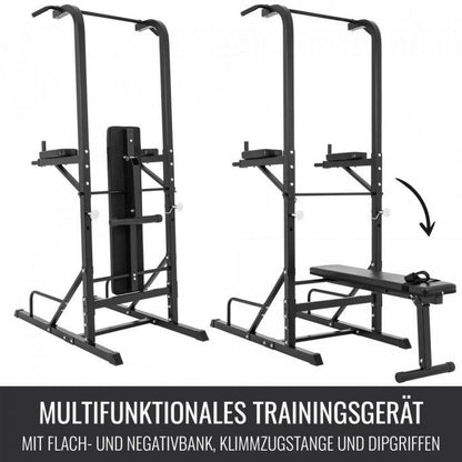 - Inklusive Flachbank, Klimmzugstange und Dipgriffen