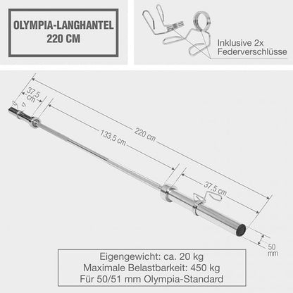 Die Olympia-Langhantel eignet sich für explosives Gewichtheben sowie für vielseitige Übungen mit freien Gewichten. Da die Gewichte der Bumper Plates zwischen 5 und 20 kg liegen, passt Du das Gesamtgewicht stufenweise Deinem Trainingsfortschritt an.
