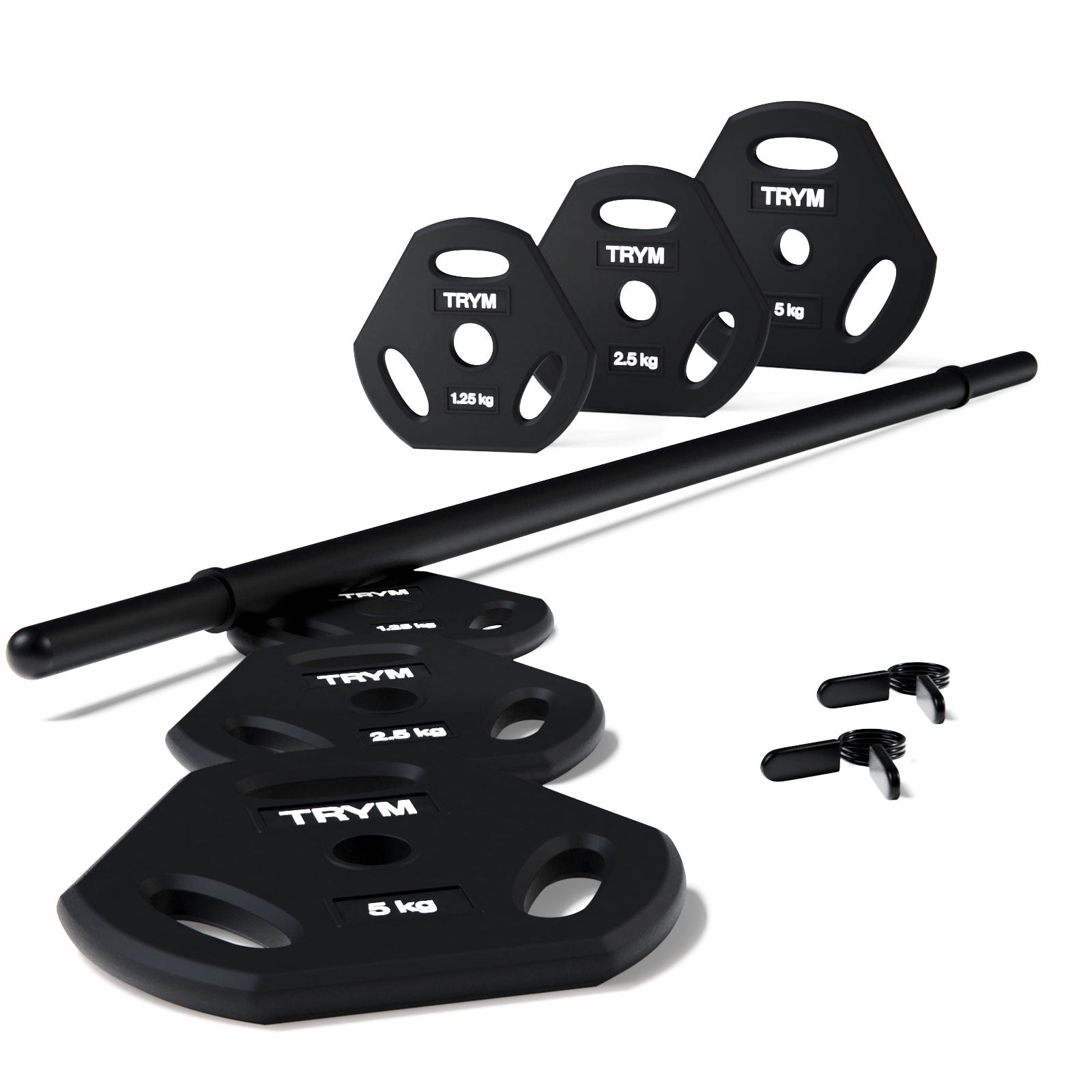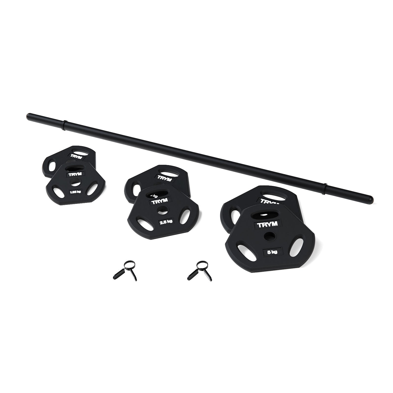 Die mitgelieferte Langhantelstange passt perfekt zu allen Scheiben im Set. Dank der stabilen Konstruktion und Schnellverschlüsse lassen sich Gewichte in Sekundenschnelle wechseln – optimal für dynamische Bodypump-Sessions und Zirkeltraining.