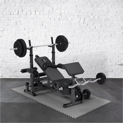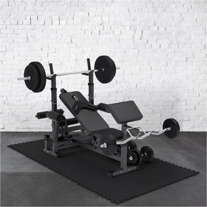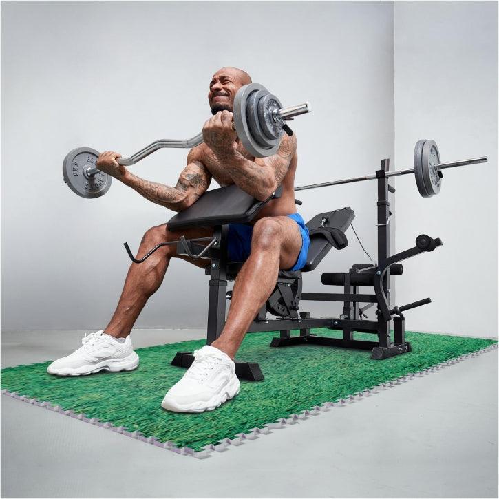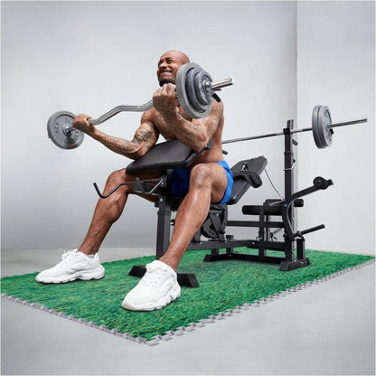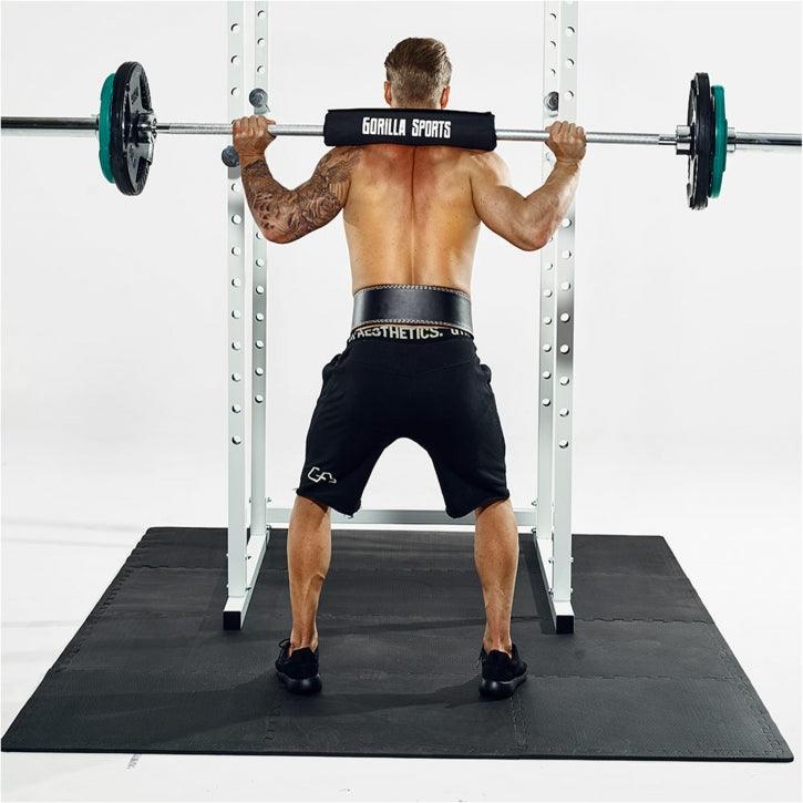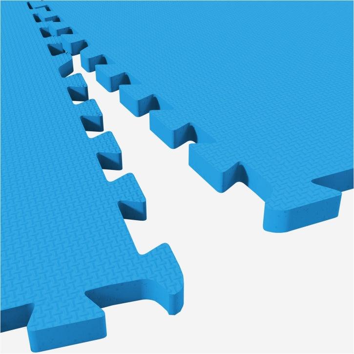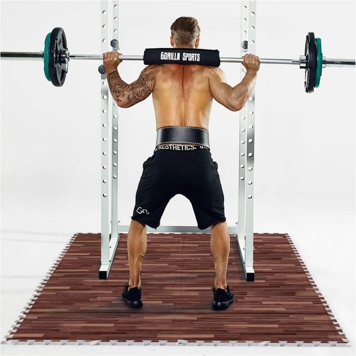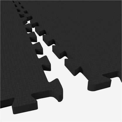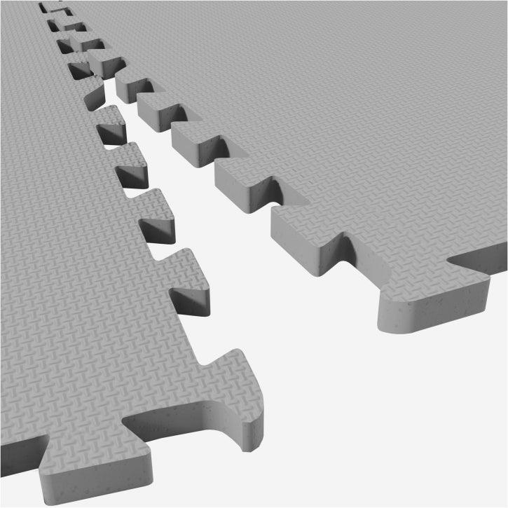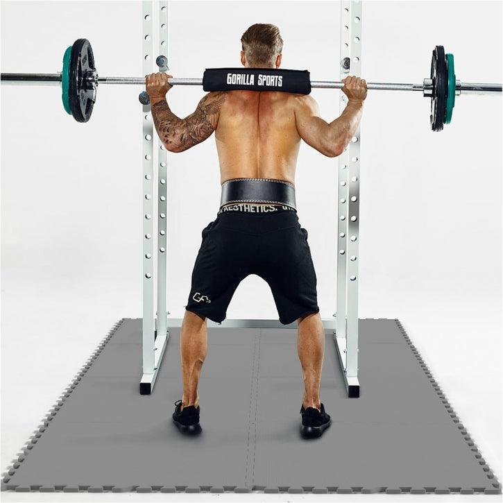 Das Gorilla Sports Schutzmattenset umfasst 8 Teile, die Du mit ihren Verzahnungen flexibel ineinander steckst. Jede der quadratischen Matten hat eine Seitenlänge von 60 cm und ist 12 mm stark. Du entdeckst sie bei Gorilla Sports in den Farben Schwarz, Blau, Grau, Holzoptik Dunkel und Grasoptik.