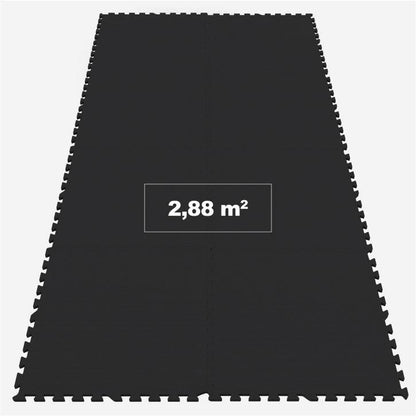 Das 8-teilige Schutzmattenset schont als ideale Unterlage für Deine Geräte samt Zubehör Deinen Boden vor Kratzern und Abrieb. Es dämmt Wärme, Geräusche und Schall und erfreut mit einer angenehmen Haptik. Zudem ist es leicht zu reinigen und eignet sich als Matte für Deine Bodenübungen.