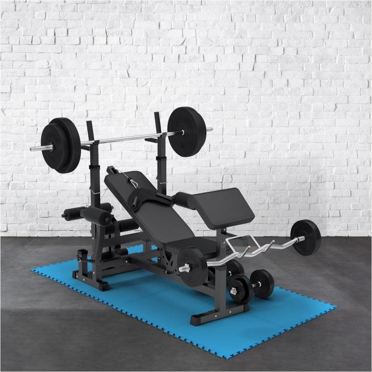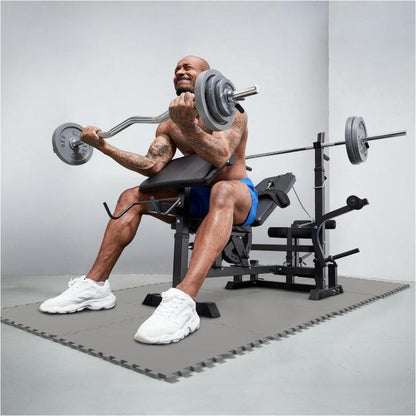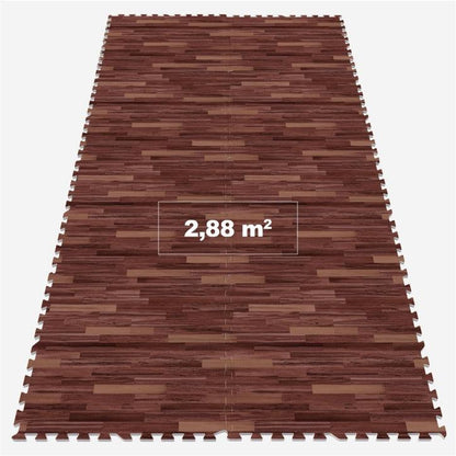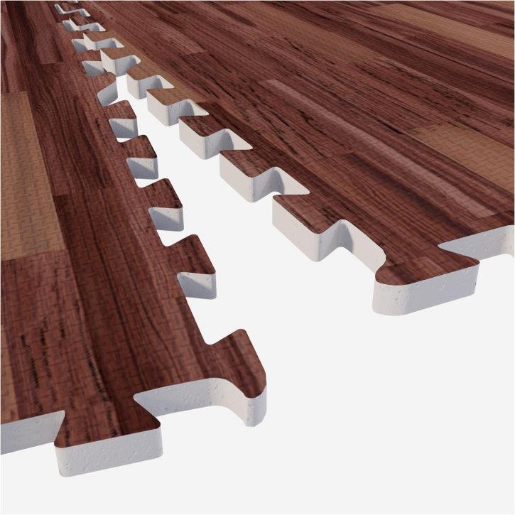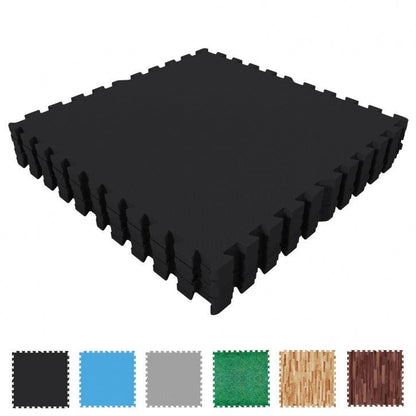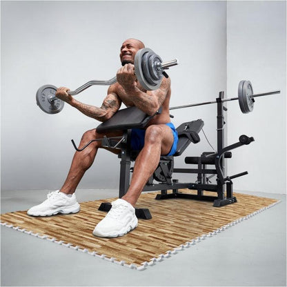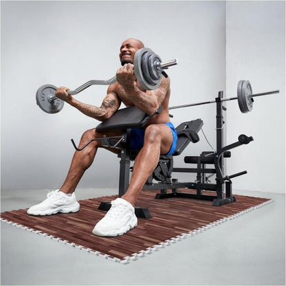 Optimal für Dein Home Gym: Das Schutzmattenset mit 8 Matten in Schwarz, Grau, Blau und Holzoptik Dunkel