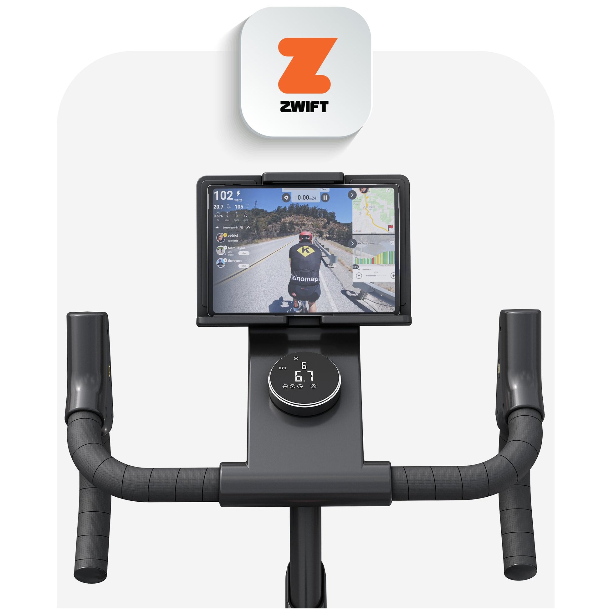 Genieße maximale Flexibilität mit der integrierten Halterung für Tablet und Smartphone – streame Deine Lieblings-Workouts oder Serien und mache jede Session zu einem Vergnügen. Dank der Transportrollen lässt sich das Fahrrad mühelos umstellen und an Deinen gewünschten Trainingsort bringen.