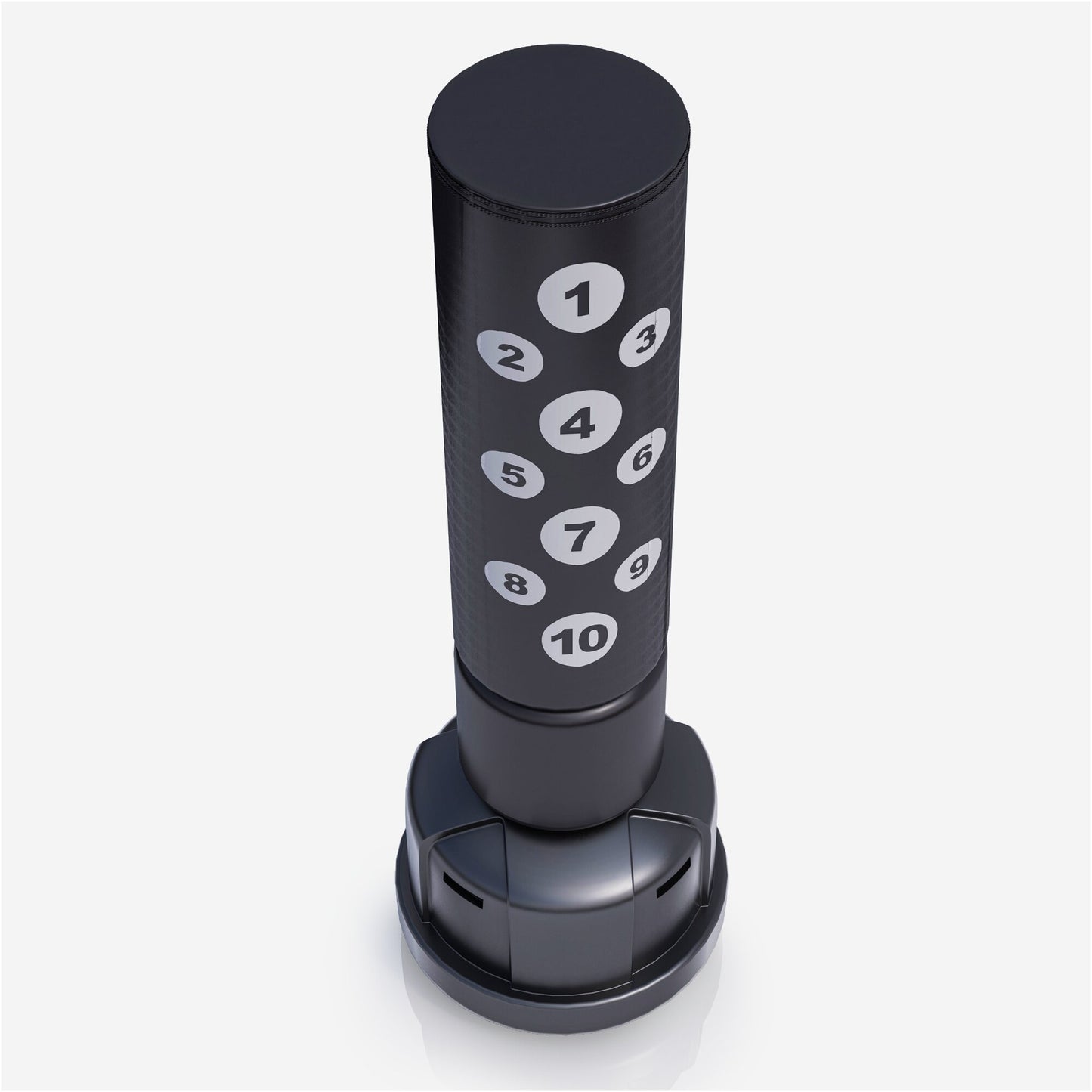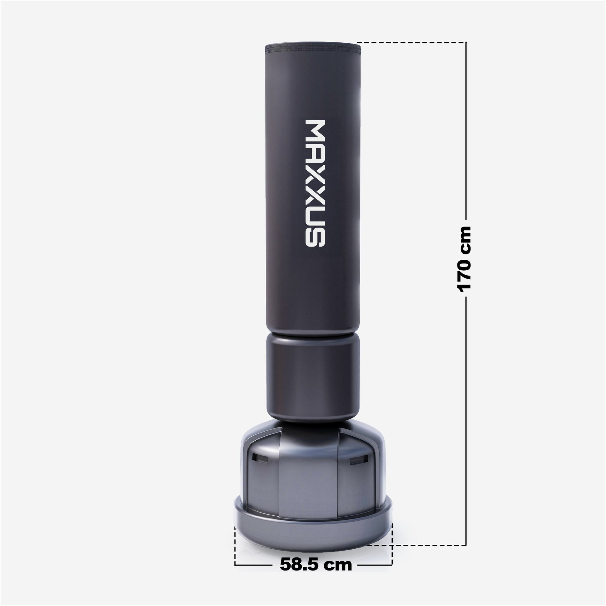 Mit einer Höhe von 170 cm bietet unser freistehender Boxsack die perfekte Grundlage für ein intensives und abwechslungsreiches Workout. Damit Du Dich uneingeschränkt und sicher bewegen kannst, empfehlen wir einen freien Bereich von mindestens 150 cm um den Standfuß. Dieser kann wahlweise mit Wasser oder rieselfähigem Sand befüllt werden und sorgt so für herausragende Stabilität – ideal für ein Training, das Deine Fitness effektiv fördert.