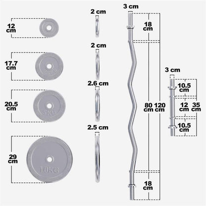 Harte Fakten – Inhalt unseres SZ-Curlsets aus Chrom mit 70 kg Gesamtgewicht: