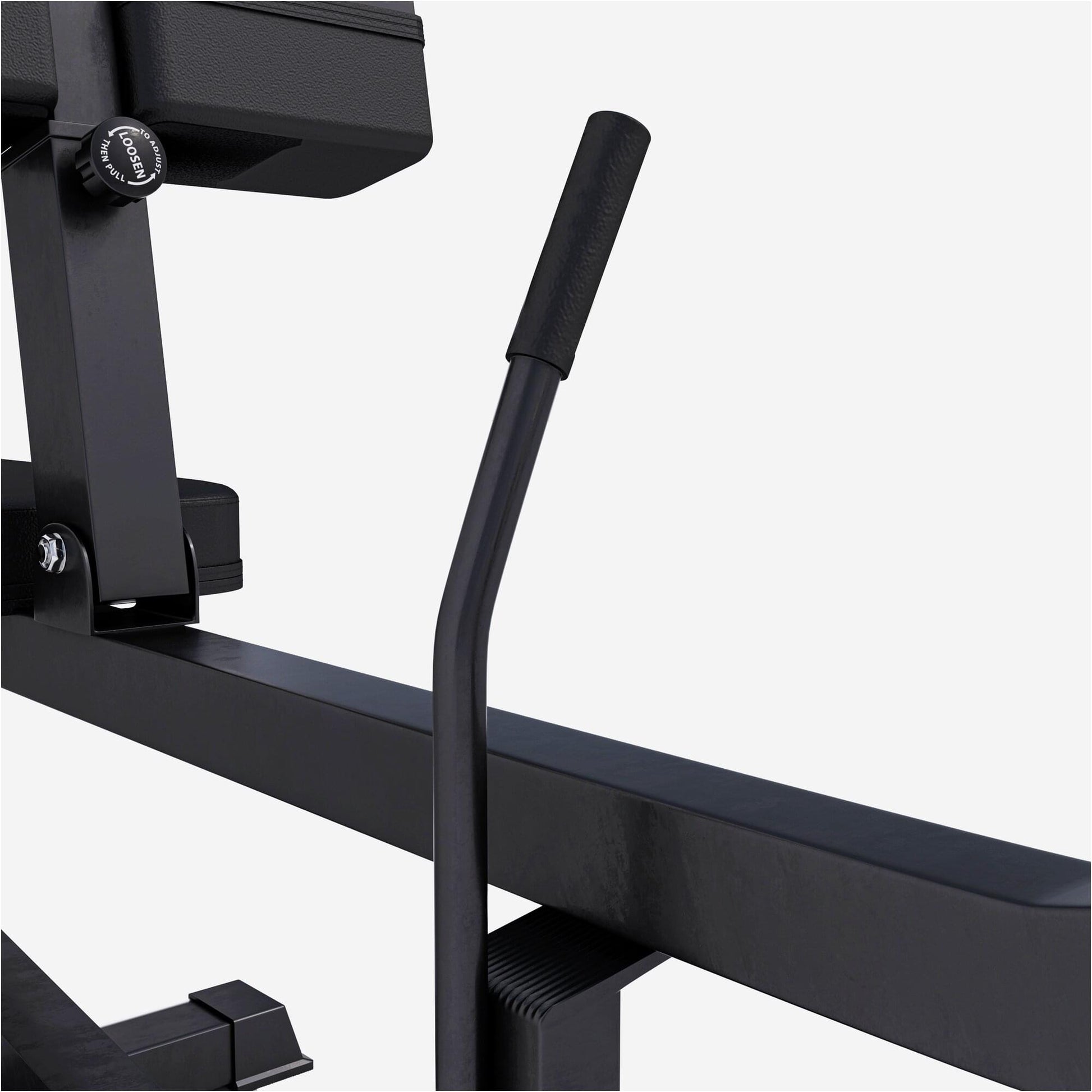 In den Waden soll es brennen - aber der Rest darf ruhig komfortabel sein: Aus diesem Grund verfügt die Wadenmaschine in Schwarz über komfortable Sitz- und Beinpolster. Zum Komfort und sicheren Training tragen auch die geriffelten Fußflächen bei. Und falls Du Dich in Bezug auf Deine Kraft überschätzt hast, sorgt der Sicherungshebel für sofortige Entlastung.